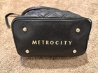Crafted for the modern woman, the Metrocity Crossbody Handbag blends functionality with style. This sleek leather bucket bag in classic black offers a versatile accessory to complement any ensemble. With its adjustable leather strap, it can be worn over the shoulder or across the body, ensuring a comfortable carry for everyday essentials.The bag features a spacious interior lined with a chic black fabric, providing a luxurious home for your personal items. Whether you're running errands or enjoying an evening out, this crossbody handbag from Metrocity's esteemed product line is a sophisticated choice that doesn't compromise on convenience.