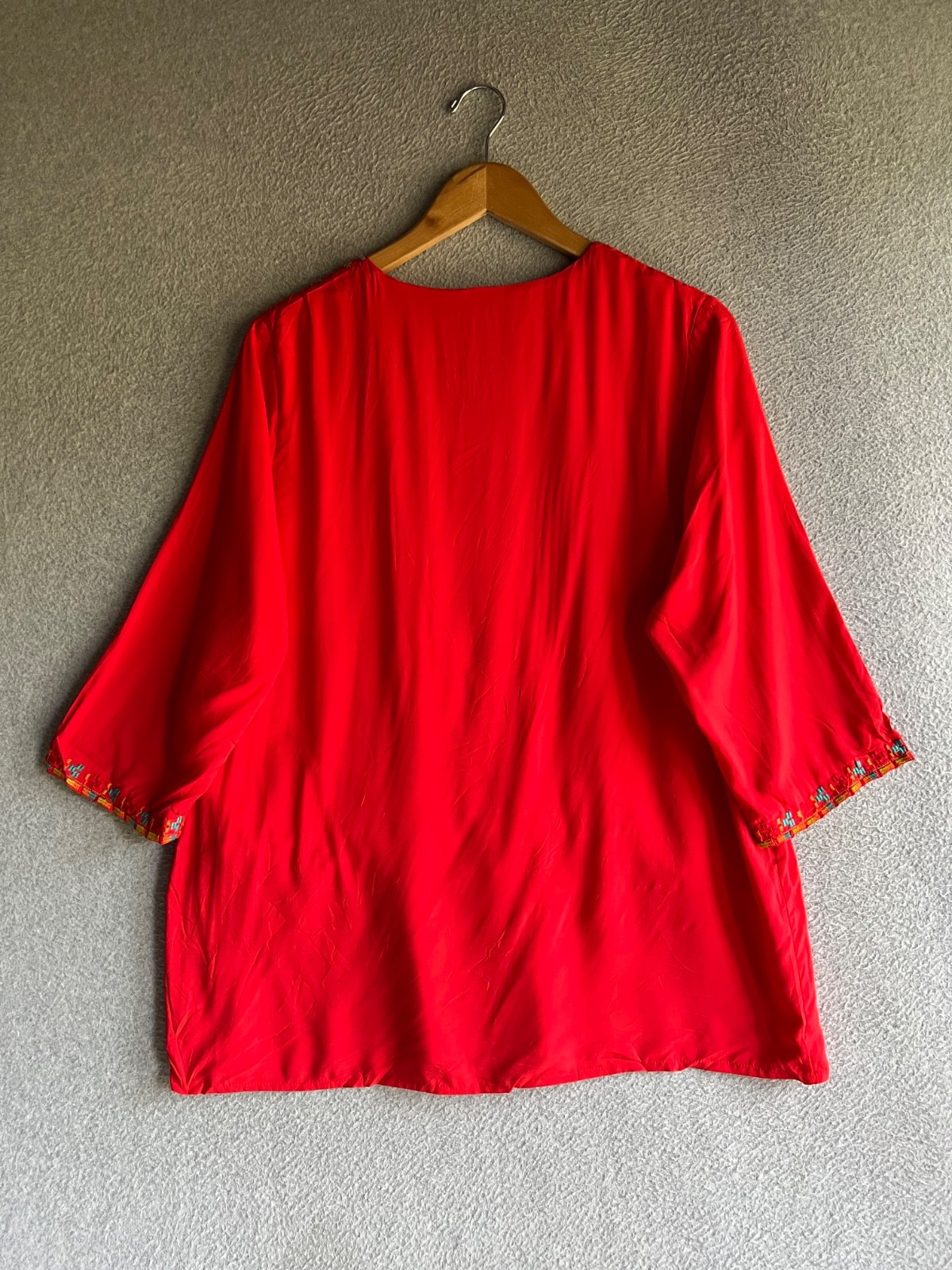 Mexican Boho Blouse with Floral Embroidery in Womens Medium Size
