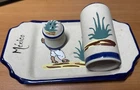 Mexican Hand Painted Pottery Tequila Set Tray Shot Glass and Salt Shaker Rare.