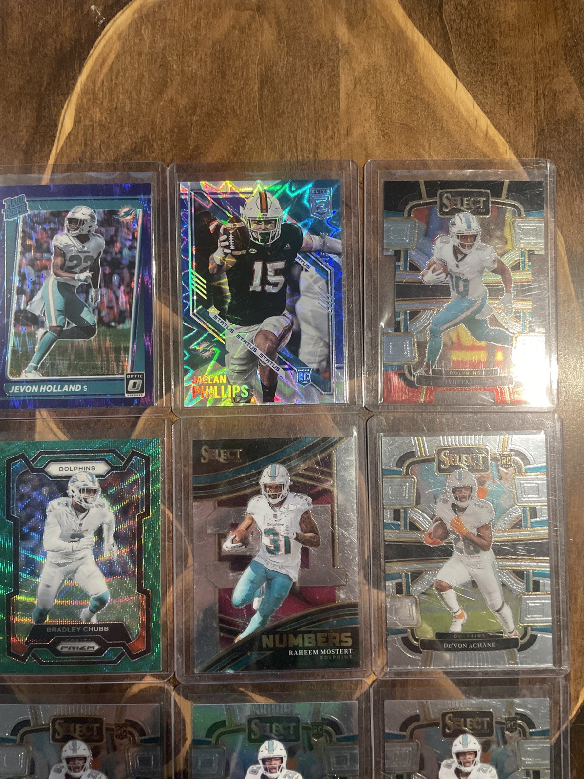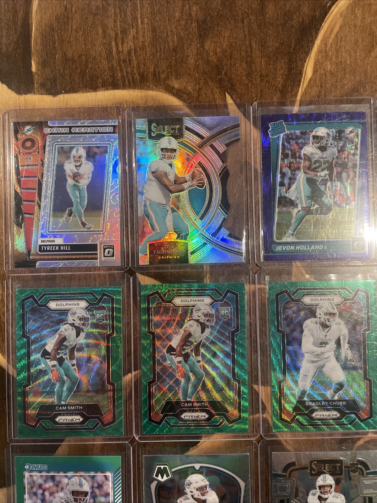 This product is a 32-card lot featuring players from the Miami Dolphins, including stars like Tua Tagovailoa, Jaylen Waddle, and Tyreek Hill. The cards are standard-sized trading cards made of card stock, with features such as being serial numbered, part of a base set, and considered rookie cards. Manufactured by Panini for the 2023 season, these NFL trading cards are a must-have for fans of the Miami Dolphins and collectors of football memorabilia. Each card is not autographed but showcases talents of top players from the team.