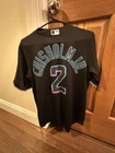 The product is a Miami Marlins Jazz Chisholm Jr Nike Replica Player Jersey in size small. It is an original item and features the player's name and team on the jersey. Jazz Chisholm Jr. is a player in the sport of baseball, specifically for the Miami Marlins team. This jersey is a great item for fans of Chisholm and the Marlins to show their support and represent their favorite player and team. Worn 2-3 times! Purchased from Fanatics this past summer! Awesome jersey with lots of life left!
