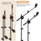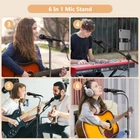 Mic Stand: Support Boom, Gooseneck, Mic Clips, Tablet Phone Holder Free combination; Meet your various needs, perfect for stage performances, speeches, meeting rooms, parties, weddings, karaoke singing or podmic, etc. Microphone Stand: The boom mic stand Tripod has longer legs than other products to hold your microphone securely in place; The non-slip feet prevent them from moving around Boom Mic Stand: With an adjustable knob, the height of the microphone stand can be adjusted between 25 inches and 66 inches for all ages; It features an upgraded support structure for increased carrying capacity Portable Mic Stand: The package comes with a premium carrying bag, just adjust the height to the lowest level and put it into the bag, no need to disassemble it into several pieces, truly portable Mic Stand Boom Arm: The microphone clip is designed with a knob adjustment, making it easy for you to adjust the angle of the microphone without having to use a screwdriver to do so