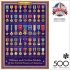 Medals of America is a 500-piece jigsaw puzzle from the Old Glory series by . The image features a case showcasing the Military and Civilian Medals of the United States of America. All of our armed forces are celebrated in this patriotic puzzle. Every jigsaw puzzle is manufactured from recycled puzzle board. A precision cutting technique guarantees that every piece will fit soundly with the company's signature Perfect Snap™. A bonus puzzle poster is also included so that you have a handy reference of what the completed puzzle should look like while you put yours together. 500 PIECE JIGSAW PUZZLE – This 500-piece jigsaw puzzle is the perfect level of challenge. Measuring 7.94in. x 7.94in., this puzzle is a great single evening activity for the entire family, friend group or yourself. For adults ages 14 and up. HIGHEST QUALITY MATERIALS – The puzzle pieces are thick and sturdy. Our high-quality dies ensure laser cut precision every time. APEX PUZZLE IMAGERY - Relax and enjoy the puzzling process while “traveling” to some of the most beautiful, bucket-list places, Or join in the fun with our portfolio of licensees, or finish in style with world renown artists. FULL COLOR BONUS POSTER - Every puzzle includes a full color poster to reference while assembling your puzzle. Or, for a real challenge, try to solve without the poster in hand! PERFECT GIFT - Puzzles are not only great gifts for any and all occasions including birthdays, holidays, housewarming parties or even just a fun night in with friends.