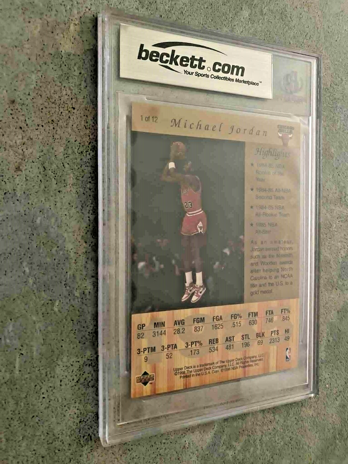 Capture a slice of basketball history with this iconic 1998 Upper Deck Gatorade 'A Legend Is Born' jumbo card featuring the legendary MICHAEL JORDAN. This collectible showcases Jordan during his 1985 season with the Chicago Bulls, offering fans a tangible piece of sports heritage. The card is an oversized 9 x 13cm, providing ample space to display this treasured piece of memorabilia. The card is part of a limited series, numbered as card #1 of 12, and comes from respected manufacturer, Upper Deck. Both card & case are in excellent condition. This card has an autofax signature of the great man & is a must-have for any serious collector or admirer of Michael Jordan's storied career. ~~Happy Bidding~~