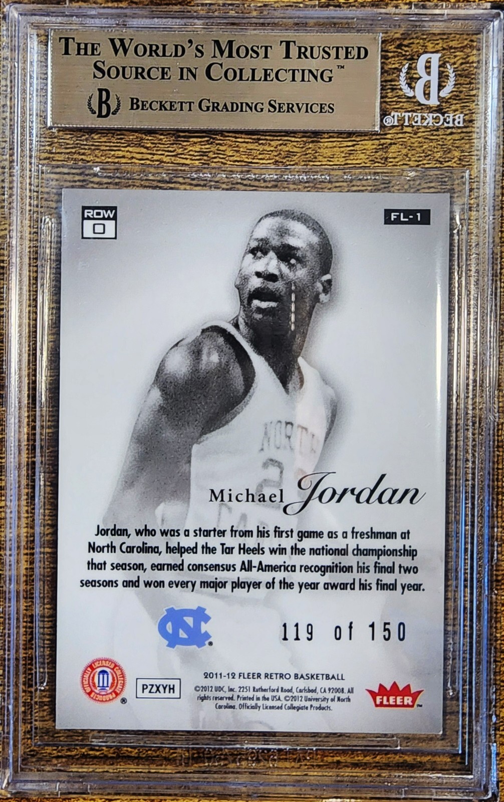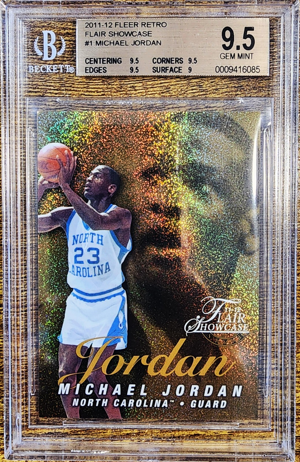 MICHAEL JORDAN 2011 FLAIR SHOWCASE RETRO ROW 0 FL-1 BGS 9.5 GEM SERIAL /150