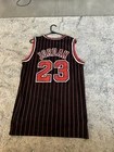 Show off your love for the legendary Michael Jordan with this retro black stripes #23 embroidery jersey. The jersey features stripes that pay homage to Jordan's 96-97 season with the Charlotte Hornets in the National Basketball Association (NBA). Made by Nike, this jersey is perfect for basketball fans of all ages and genders. It comes in a size L and is designed to fit comfortably. The jersey is black in color and has the iconic Nike logo on the front. Get this jersey today and add it to your collection of sports memorabilia and fan apparel.