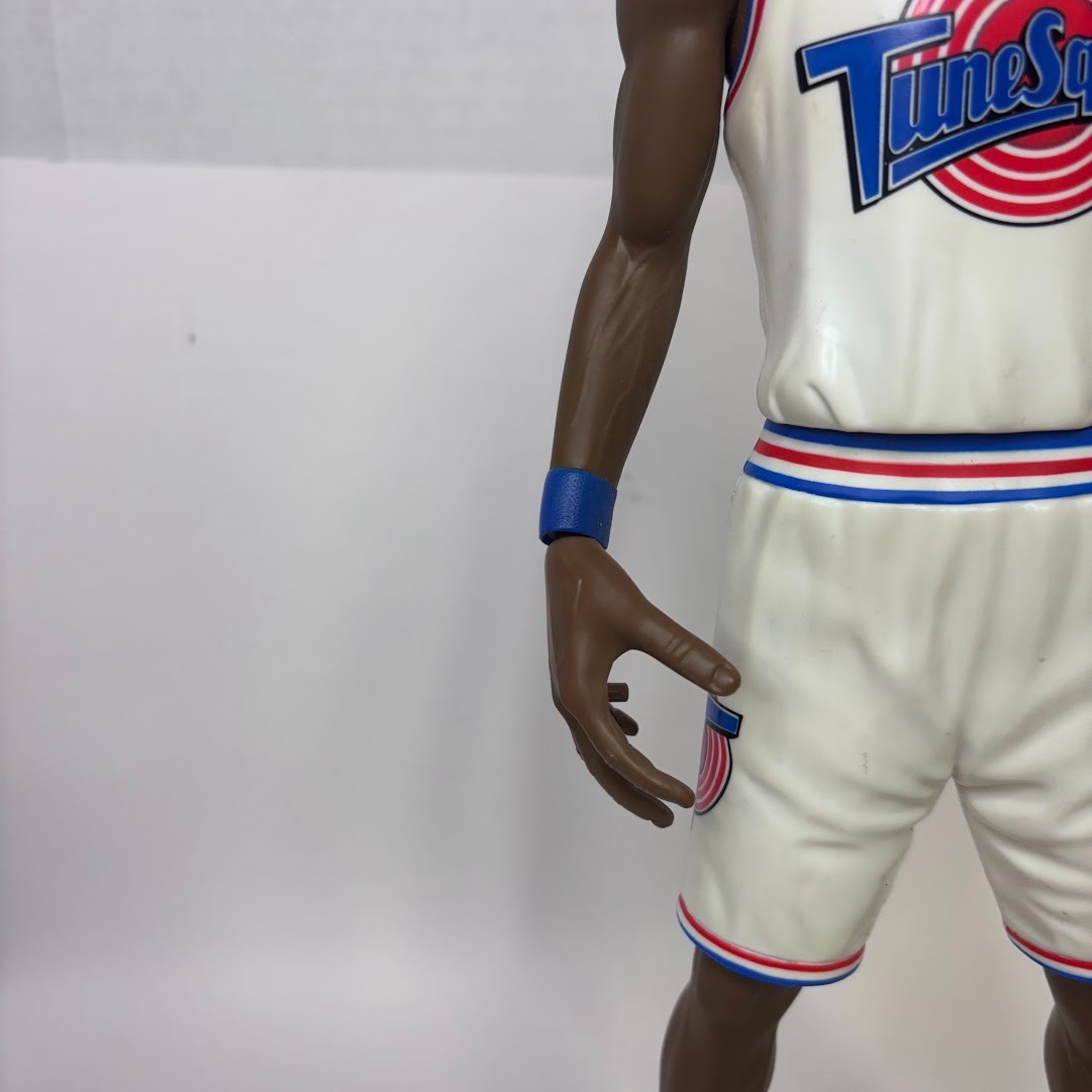 The Michael Jordan Space Jam Tune Squad Vintage 1996 Warner Bros 15" Talking Figure is a highly collectible and nostalgic action figure representing the iconic basketball player Michael Jordan. This hard plastic figure stands at 15 inches tall and comes with a basketball as part of the Space Jam franchise. Produced by Warner Bros., this vintage piece is a must-have for fans of the animated adventures series, offering a unique talking feature that adds to the fun of displaying this classic character from the 1990s. Perfect for basketball enthusiasts and collectors alike, this item captures the essence of the beloved movie Space Jam.