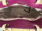 Elevate your style with this stunning Michael Kors Bedford shoulder bag in a beautiful purple plum color. The bag is crafted from high-quality leather with a pebbled finish and features silver hardware accents. The double handles and adjustable strap make it easy to carry, while the inner pockets and detachable strap provide practicality. The bag also comes with a key chain, maintenance card, and original dust bag for safe storage. Perfect for any occasion, this bag is suitable for travel, weddings, parties, cocktail events, casual outings, formal events, workwear, and business meetings. The Michael Kors Bedford bag is a classic and timeless piece that will never go out of style. Add this stunning bag to your collection today!