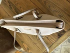 This sophisticated Saffiano leather Jet Set beige tote from Michael Kors showcases a timeless design with its luxurious finish and elegant gold hardware. Perfect for work or travel, it offers a spacious interior with a padded laptop pocket, two large pockets on either side and multiple small pockets for storage. It’s a stylish and functional design. The tote's minimalist style and high-quality craftsmanship make it a versatile addition to any wardrobe. A very roomy large tote! Excellent condition, no flaws. It's a popular choice for those who need a versatile bag for work or travel. NEW WITHOUT TAGS! Not used.