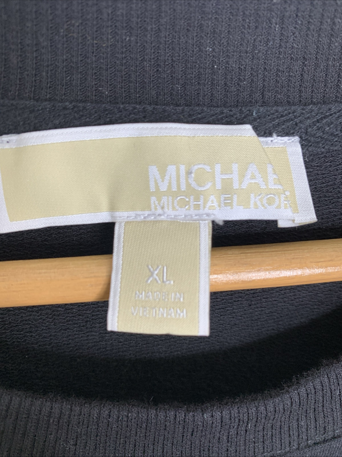 Michael Kors Large Spell Out MK Black Gold Studded Sweatshirt Size XL Lightweight Preowned and in Great excellent like new condition Color is rich not faded. Black is hard to capture in photos. Armpit to Armpit 25” Full length 26”
