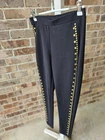These pants are a statement! Gold round studs from waist to ankle on both legs. They're pull on and do not have pockets. Even so, they are a high quality and could be styled business casual or even professional. US SHIP ONLY :)