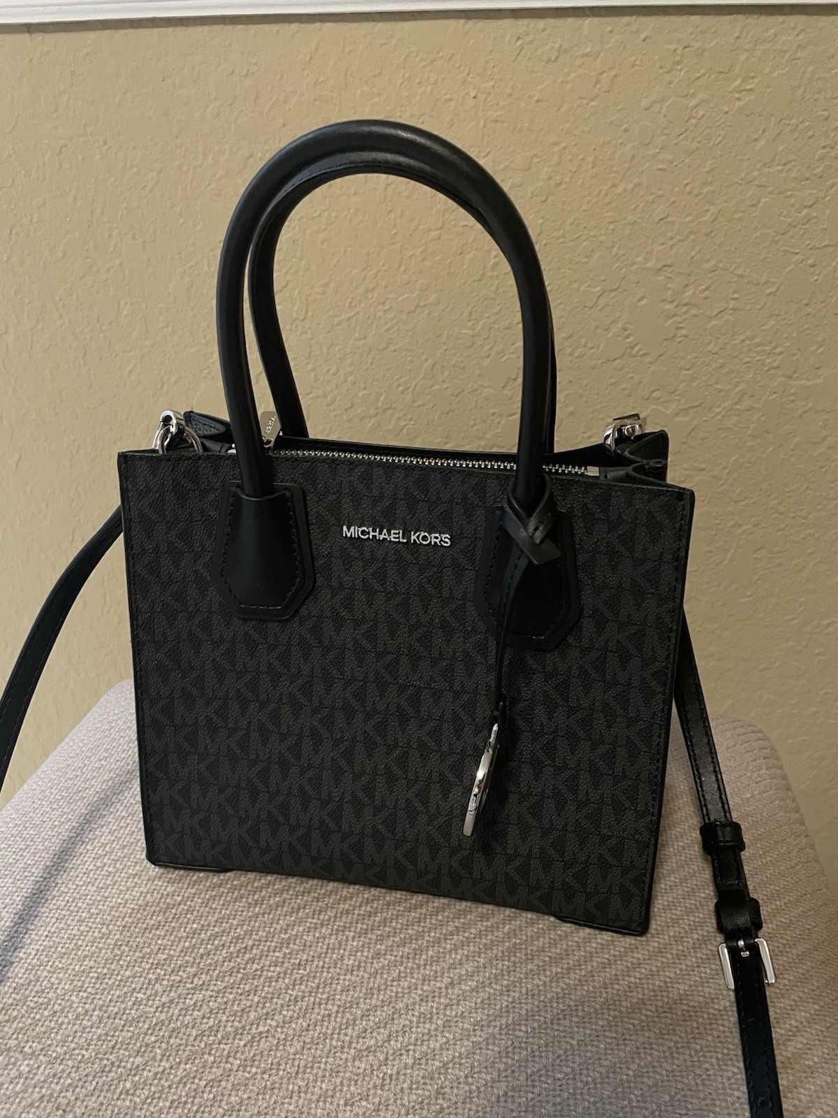 Michael Kors Black Logo Satchel Top Handle Bag with Adjustable Shoulder Strap