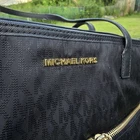 The Michael Kors Handbag Zip Top Tote is a stylish and practical travel bag perfect for on-the-go women. With its spacious interior and multiple pockets, this large tote is ideal for storing essentials while traveling. Made of durable polyester and nylon materials with a coated finish, this black handbag features the signature MK monogram pattern and a secure zip closure. The shoulder bag style and lightweight design make it comfortable to carry, making it a must-have accessory for any woman on the move.
