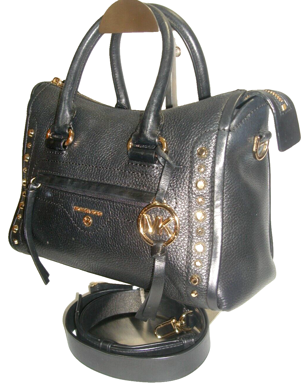 Gorgeous Michael Kors Carine Black Leather Studded Satchel Shoulder Bag is New Without Tags and Comes in a Brand New Silky Protective Dust Bag ! Please see the Item Specifics above for all the details, features, and measurements for this amazing bag that is gorgeous and stylish, stunning and a real catch -- so DON'T MISS IT!!! Please note all photos are part of this bag's description so look carefully! Please also note that color will vary from Actual to Photograph and from Computer to Computer. And lastly, please note that bag size and condition are subjective and labeled according to my opinion. Please note that colors will appear lighter than actual due to camera flash. Please message me if you have any questions or concerns.