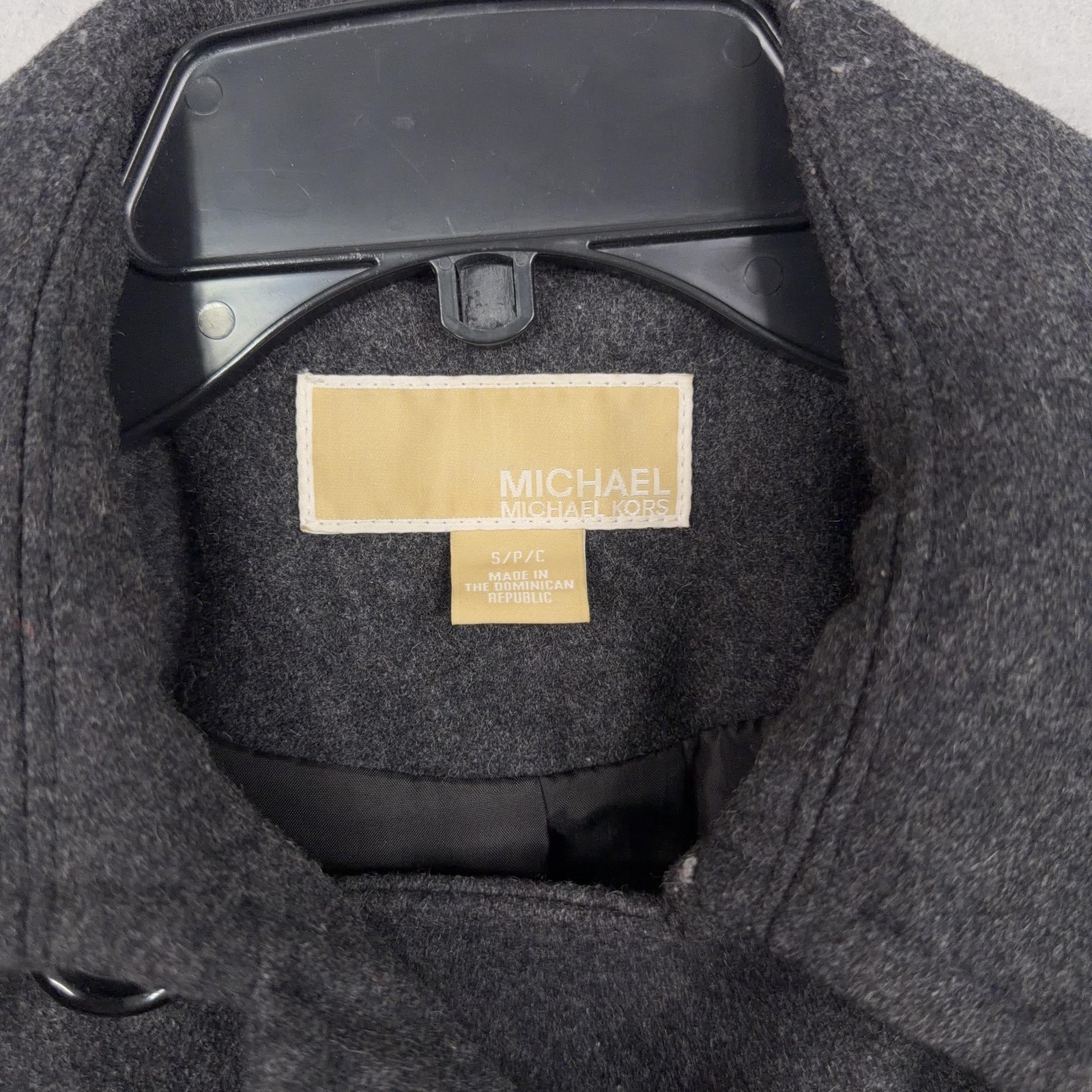 Michael Michael Kors Coat Womens Small Gray Wool Blend Peacoat Double Breasted Gently worn with minor lint from normal use. No obvious stains, holes, or damage. All buttons and lining intact. Brand: Michael Michael Kors Item: Womens double-breasted wool blend coat with a tailored waist and slightly flared hem. Color: Charcoal gray. Size on tag: Small (S/P). Materials: Wool blend shell with smooth polyester lining (per interior tag). Made in the Dominican Republic. Details: Wide notched collar with button tab, buttoned shoulder epaulets, six-button double-breasted front, vertical slit hand pockets, seamed waist for a flattering fit, fully lined interior, and shaped back seams. Care: Dry clean only (per care tag). 23192 Measurements: - Previous washings may change the sizing written on the tag. - Please refer to the photos above for all measurements. - Please compare our measurements to that of one of your favorite garments. - Please note, item measurements are approximate . All items are bagged and sealed after being photographed, then stored in a smoke free environment to ensure the item is exactly the same as when photographed. All items have been washed per eBay standards & policies. I carefully package and ship daily. Feel free to contact me with any questions.