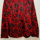 Michael Kors Full Zip Blouse Women's Medium Crimson Black Floral Roll Tab Sleeve This ladies top is in excellent pre-owned condition with no holes or stains and minimal washwear. Please see all photos as this is the exact garment you will receive. Measurements taken with item laying flat- armhole to armhole is 19", length from high point of shoulder to bottom hem is 26". 100% Polyester, machine wash cold. Same day shipping Thanks for looking!