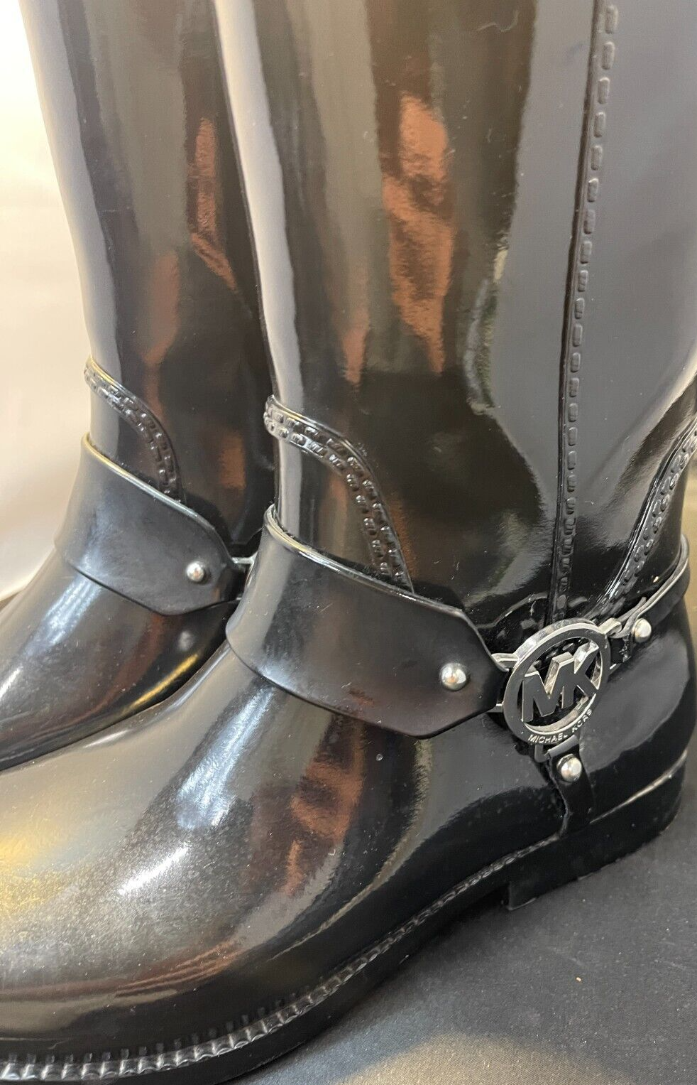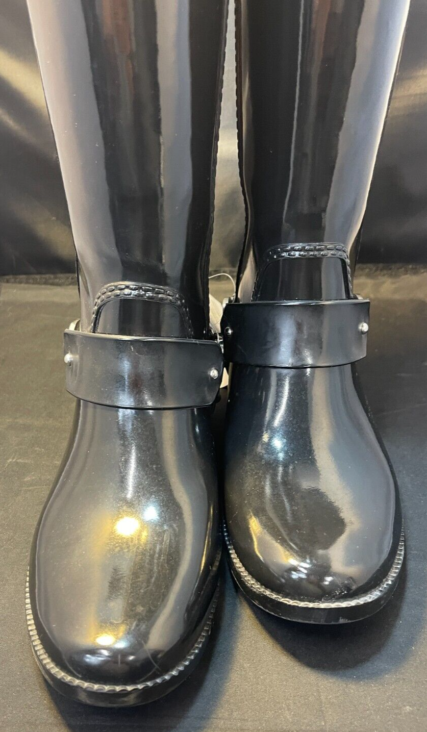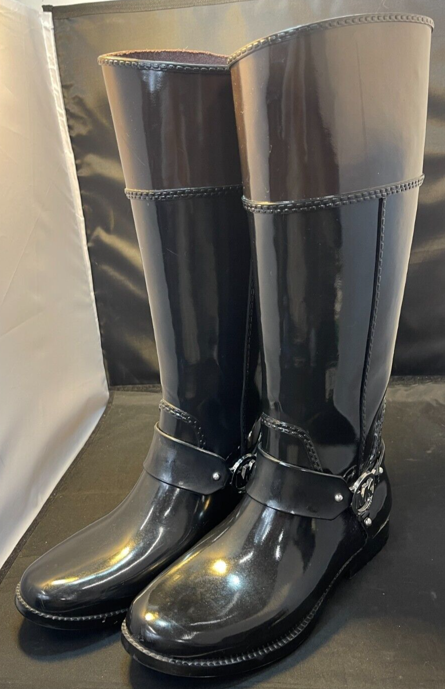 Michael Kors Fulton Harness Tall Waterproof Rain Boots size 9 Black Brand: Michael Kors Overall Condition: Excellent See pictures for details. Materials: Rubber Shipped with USPS Priority, Flat Rate or, when possible, First Class Mail. Michael Kors size 9 black rubber rain boots. Tall shaft with very dark brown trim. Harness style with metal logo detailing. Felted interior. Nice textured bottoms sure to make your feet stay in place with extra grip for those wet and slippery days outside! Details for Shopper Size: 9 Shoes Width: 4” Heel Height: Low/li> Heel Type: Block Toe Style: Round Toe Payment Policies We accept payment through PayPal, credit card, and debit card. Please note that the item may be relisted if payment is not received within the 10 day period. Shipping Policies Delivery estimates will be displayed at checkout. In-store pickup is also available if you would like to visit us in store. We ship to Continental United States only. Terms of Sale Each item we sell is unique. There are no exchanges for the same item available. All items are carefully inspected by My Sister’s Closet of Monroe County’s quality control team prior to shipping. Please carefully review item details. If you have questions, please message us regarding the item before purchasing. Note: Due to the different monitor and light effects, the actual color of the item shown might be slightly different from the color in pictures. Return Policy We strive to describe and measure our items accurately. If your order is not what you expected, we accept returns under the following conditions: The item was not as described as listed The wrong item was shipped. The item does not fit. If the wrong item was shipped, we will attempt to replace it with the item originally ordered. Please note - items not returned in the exact same condition, with tags attached, may be subject to a partial refund to account for loss of the item’s value. Please refer to eBay Return policy for more details. You are covered by the eBay Money Back Guarantee if you receive an item that is not described as listed. Return Requirements: The buyer must return the item within 30 days of receipt. Buyer is responsible for return shipping charges. The item(s) must be returned in the original condition, unworn, with tags attached. Thank you for shopping with us! A little bit more about us… My Sister’s Closet is a nonprofit serving women in poverty since 1998. Our mission is to help women move closer to economic self-sufficiency by providing essential career development tools. This includes job training, mentoring, advocacy services, and professional attire for job interviews to help them find employment. We have helped over 2500 women thus far. Most clients we serve have been dealing with homelessness, domestic violence, illness, divorce, job loss, economic recovery and/or lack basic education. Visit Our eBay Store