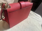 The Michael Kors Greenwich Small Saffiano Leather Crossbody Bag is a stylish and compact accessory designed for women. Made from luxurious leather with a suede lining, this square-shaped bag features a solid pink exterior with gold hardware accents. The turn lock closure and crossbody strap make it convenient for on-the-go use, while the outer pockets provide extra functionality. With the signature Michael Kors character and original dust bag included, this bag is a chic and practical choice for everyday use.