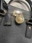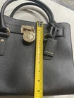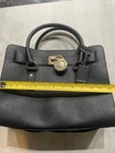 **pre-owned handbag in great condition ** The Michael Kors Hamilton Medium Crossbody Satchel Handbag in black is a stylish and versatile accessory for women. Made from pebbled leather with silver hardware accents, this medium-sized bag features a zip closure, double black leather handles, and an adjustable strap for convenience. It includes inner pockets, a detachable strap, brand card, and bag charm, making it perfect for casual occasions. The classic satchel/top handle bag design, combined with the luxurious material and brand, ensures that this handbag is a timeless and on-trend addition to any wardrobe.