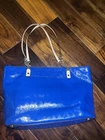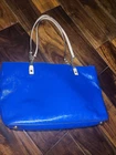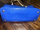 Bag in excellent condition except handle wear **see photos It has gold tone hardware with rotal blue color 5 inside pockets Bag approximate size when laid flat 16" across the middle 9.5" height 5" depth 10.5" double handle strap drop No smoking home Next day ship