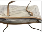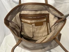 The Michael Kors Kempton Purse is a stylish shoulder bag made of brown nylon with faux leather trim. It features a rectangular shape, zip closure, and double brown handles. This medium-sized bag is perfect for various occasions such as travel, casual outings, workwear, and business meetings. The gold hardware accents, logo charm, strap accent, and zipper detail add a touch of sophistication to this classic and fashionable designer purse. With multiple inner and outer pockets, key clip, and lined interior, this bag offers both style and functionality for the modern woman on the go. Measurements: 9.5" x 14" Very good pre-owned condition. See pictures for item and condition details.