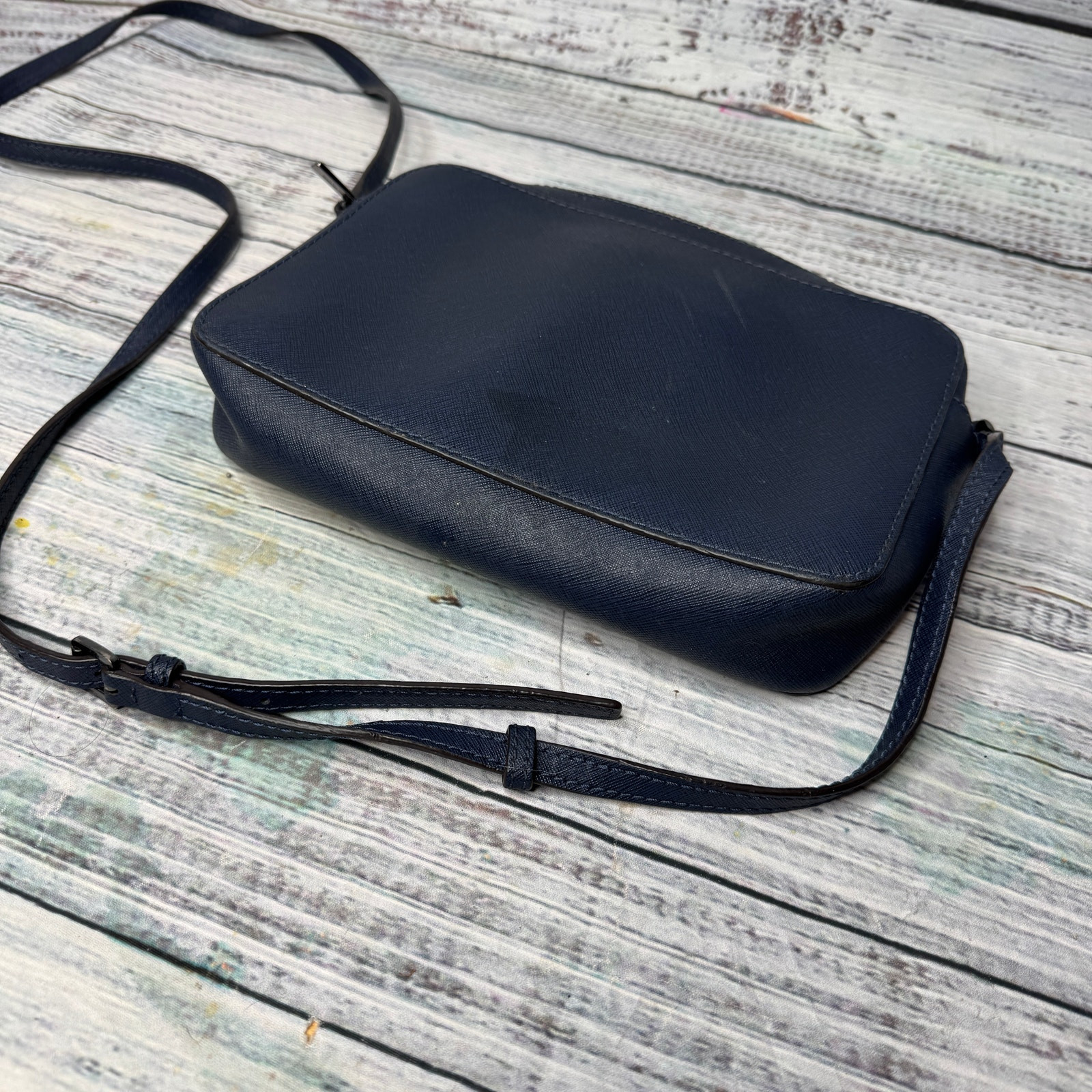 Michael Kors MK Black Leather Studded Navy Blue Cross Body Bag this is in good condition with no flaws
