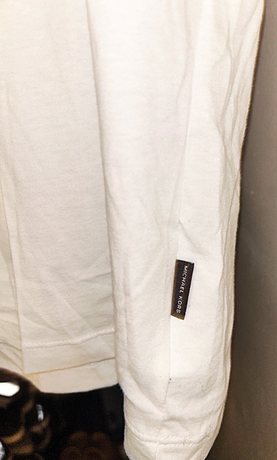 Upgrade your wardrobe with this stylish Michael Kors T-shirt featuring a graphic print of aviator sunglasses. Made of 100% cotton knit fabric, this shirt is perfect for summer and spring seasons. The crew neck and short sleeves provide a comfortable fit for regular wear. This logo-accented T-shirt comes in Grecian white and is machine washable for easy garment care. The XL size is suitable for men and the Michael Kors brand assures quality. Perfect for holiday themed events, this T-shirt is a must-have addition to any fashion-forward men's clothing collection.