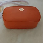 Michael Kors Orange Pebbled Shoulder Bag Double Zip Gold Hardware Logo Women