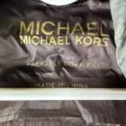 Michael Kors women’s packable hooded puffer jacket in olive green with gold-tone hardware, size S Regular. Lightweight and quilted design perfect for travel or everyday outerwear. Pre-owned in good condition with normal signs of use—some light wear may be apparent. Please review all detailed pictures carefully, as they provide the most accurate representation of the item’s condition, including any imperfections or wear.