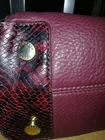 Crafted with a luxurious attention to detail, the Michael Kors Riley Satchel is a stunning accessory for any occasion. Its rich burgundy and black python leather exterior exudes elegance, paired with gold-plated hardware that adds a touch of sophistication. The bag boasts a spacious interior lined with a combination of leather and fabric, ensuring your belongings are cushioned in style. Featuring a variety of functionalities, this satchel includes a cross-body strap for hands-free carrying, inner pockets for organization, and a detachable strap for versatile wear. Whether you're heading to the office, attending a wedding, or enjoying a casual day out, the Michael Kors Riley satchel seamlessly transitions to fit any event with its convertible design and chic double handles.