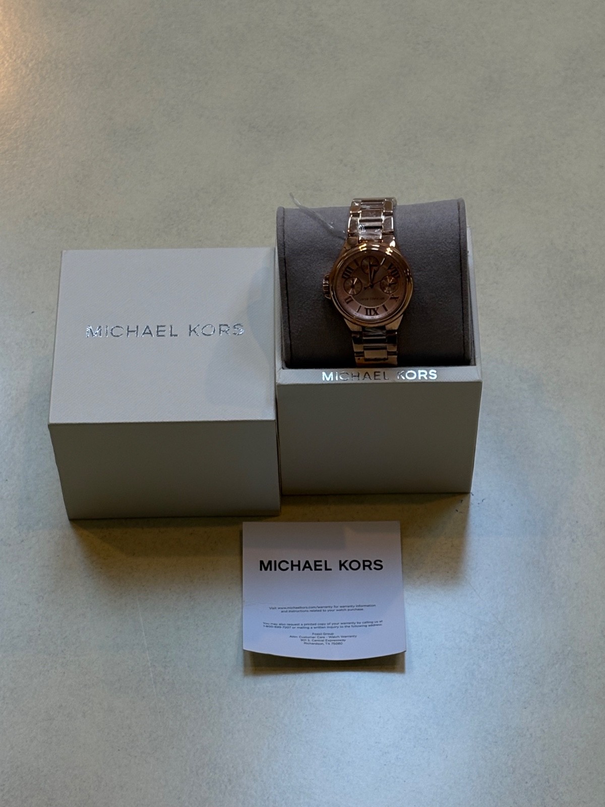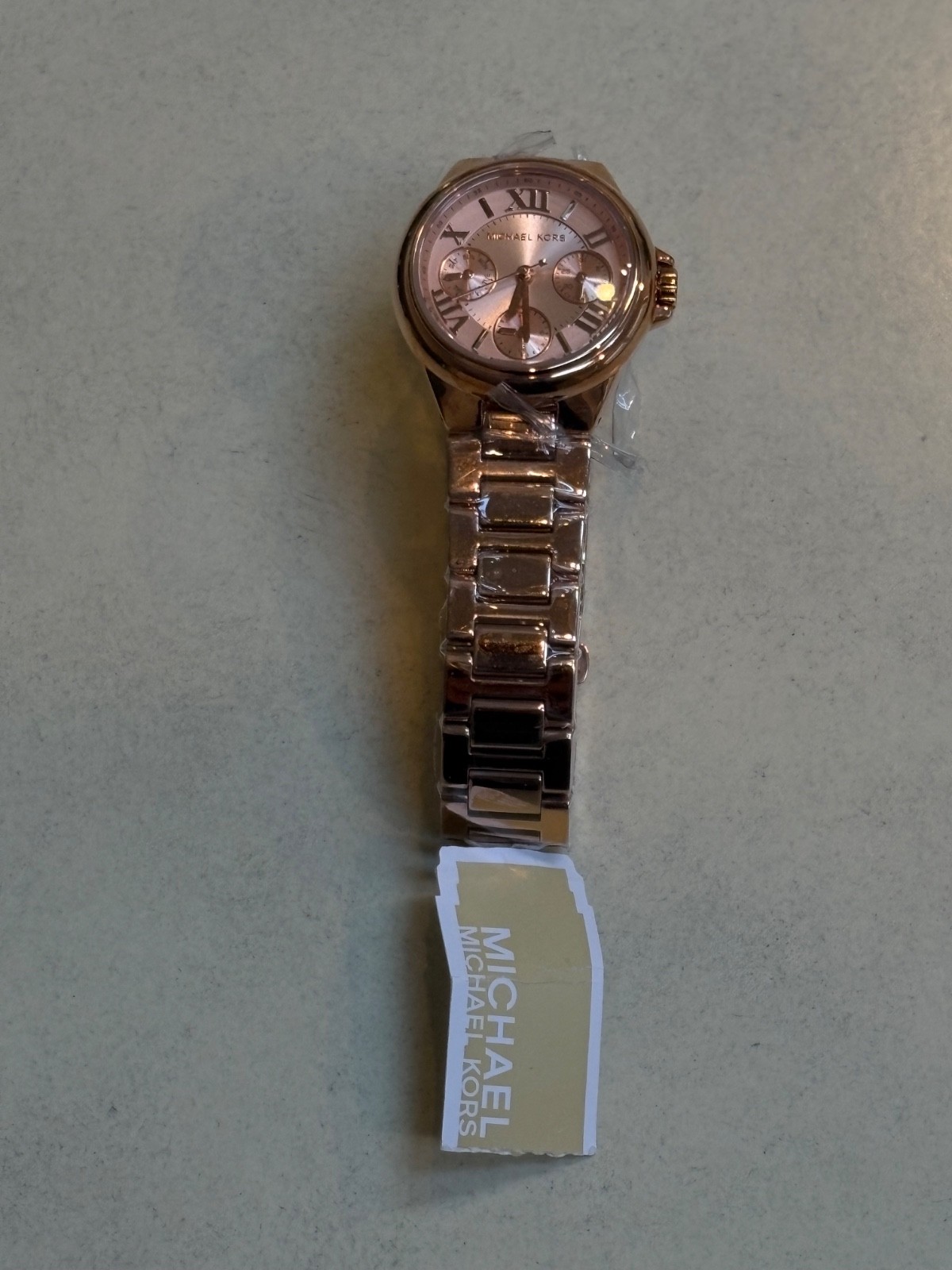 Stylish Brand New Michael Kors watch in rose gold. Features Roman numeral dial and sleek bracelet.