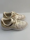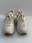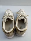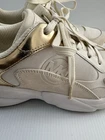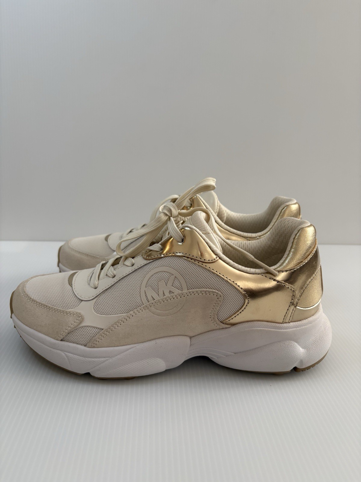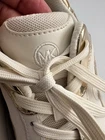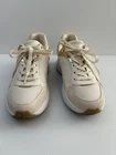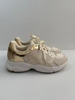 Michael Kors Sami Trainer sneakers in a white/ecru and pale gold colorway. They feature a sporty, chunky "dad sneaker" silhouette with elegant, metallic accents. Key Features Design: These lace-up sneakers are made with a mixed-media upper combining breathable mesh, synthetic materials, leather, and suede accents. Color: The primary colors are optic white/ecru with metallic pale gold details on the heel counter and trim. Comfort: They include a padded tongue and collar, a removable cushioned insole, and a durable rubber traction sole for all-day comfort and stability. Sneakers are in good condition Size 7 Cream color Some signs of use (almost excellent condition) 📦 Ships with care from a smoke-free environment. 💌 Questions welcome 🫶Thank you for shopping at Karo’s