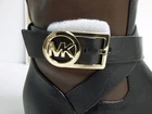Michael Kors Size 5.5 M BRYCE TALL Black Mocha Leather Boots New Womens Shoes -Style: 40F5BYMB8L -Color: Blk/Mocha -Leather upper -Leather and textile lining -Leather insole -Man made outsole -Heel height is approximately 1.25 inches -Shaft height is approximately 14.75 inches -Top to bottom is approximately 16 inches -Boot opening measures approximately 15 inches and flexible -Emblem and zipper are gold color