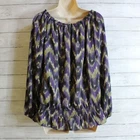 Michael Michael Kors Silky Blouse Women's Size Medium This Michael Kors top is lightweight and silky feeling. It is black, purple, olive green and beige with a splashy watercolor print. It has an elastic scoop neck with bloused long sleeves with elastic wrist hems. It has a slight drop waist with smocking. It's beautiful quality and is in excellent hardly used condition. Approximate Measurements Bust: 21" armpit to armpit laying flat Length: 25" from shoulder to hem 100% Polyester