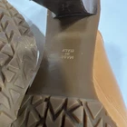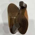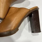 These Michael Kors women's leather heeled clogs in size 6.5 are perfect for a casual occasion with their solid brown color and studded accents. The slip-on style and block heel add a touch of sophistication, while the leather lining and upper material ensure comfort and durability. Ideal for summer, fall, or spring, these clogs are a stylish choice for any fashion-forward woman looking to elevate her outfit. Very slight shade difference in leather but not really noticeable otherwise barely worn.