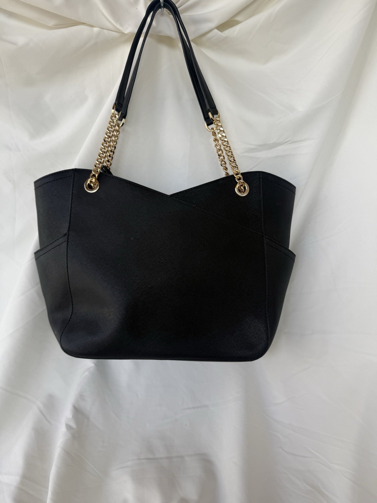 The Michael Kors Women's Purse is a stylish and sophisticated shoulder bag in black leather with a solid pattern. It features a zip closure, a convenient bag charm, and is designed specifically for women. This purse is a high-quality accessory that exudes elegance and functionality, perfect for adding a touch of luxury to any outfit. Michael Kors is known for his sleek designs and this purse is no exception, making it a must-have accessory for any fashion-forward woman.