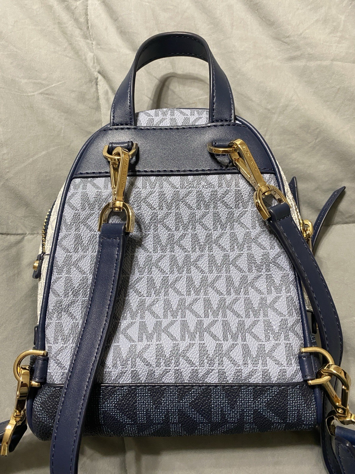 Michael Kors Women's Rhea Zip Medium Backpack, Navy/White/Light Blue, OneSize
