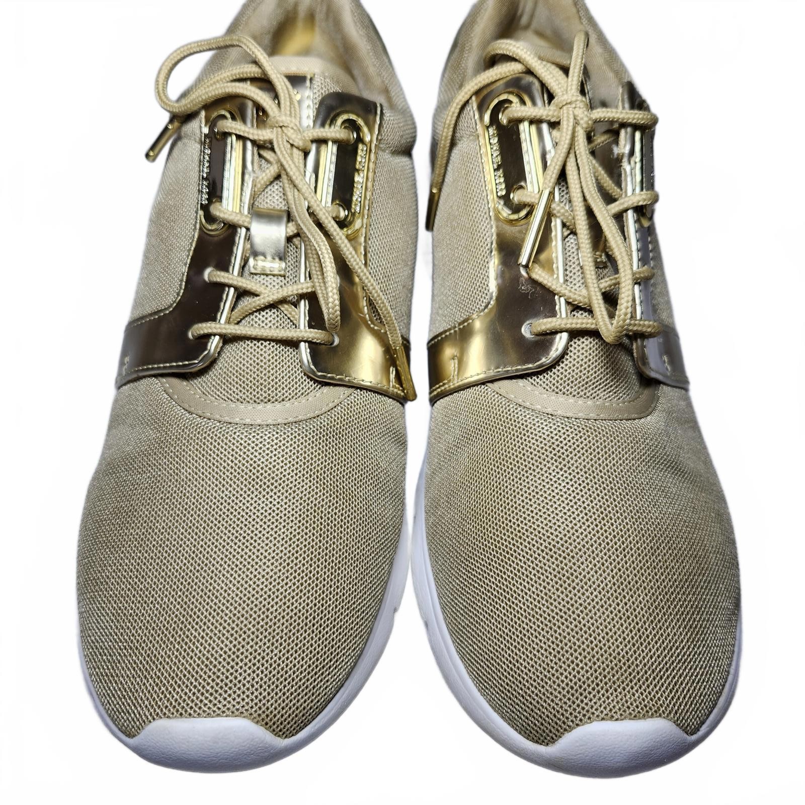 Condition: Good pre-owned condition, no visible flaws Brand: Michael Kors Color: Beige with Gold accents Size: 9.5 M Material: Textile & Man Made Upper, Rubber Outsole Style: Casual Sneakers Design features: - Lace-up closure - Gold metallic detailing on sides and heel - Cushioned white rubber sole for comfort - Breathable textile upper >>SAME DAY SHIPPING ONLY $4.99 (Poshmark only)<< *Shoes are cleaned and sanitized* Poshmark style tags: Womenswear, Sneakers, Casual Shoes, Michael Kors, Gold Accent Trending SEO keywords: Michael Kors women's sneakers, beige sneakers, gold accent shoes, casual women's shoes, comfortable sneakers. Wide width Hashtags: #WomensSneakers #MichaelKorsStyle #CasualFootwear #GoldAccent #ComfortSneakers