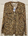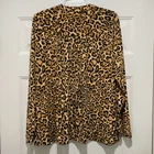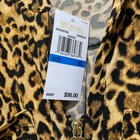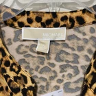 This Michael Kors blouse is designed for women in size X Large, featuring a striking leopard animal print pattern. The top has a V-neckline, long sleeves, and a zip closure with accent details. Made from a blend of polyester and spandex, the blouse offers a comfortable stretch fit and includes pockets for added convenience. Suitable for various occasions including travel, casual outings, workwear, or business settings, this stylish piece embodies a trendy animal theme that can be worn throughout different seasons.