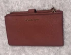 The Michael Kors Wristlet Wallet in Blush Pink is a stylish and functional accessory for women. With a double zipper closure, this wallet features multiple credit card slots for easy organization. The wristlet design makes it convenient to carry around, while the pink color adds a pop of color to any outfit. Perfect for on-the-go use, this wallet from Michael Kors combines fashion and function seamlessly.