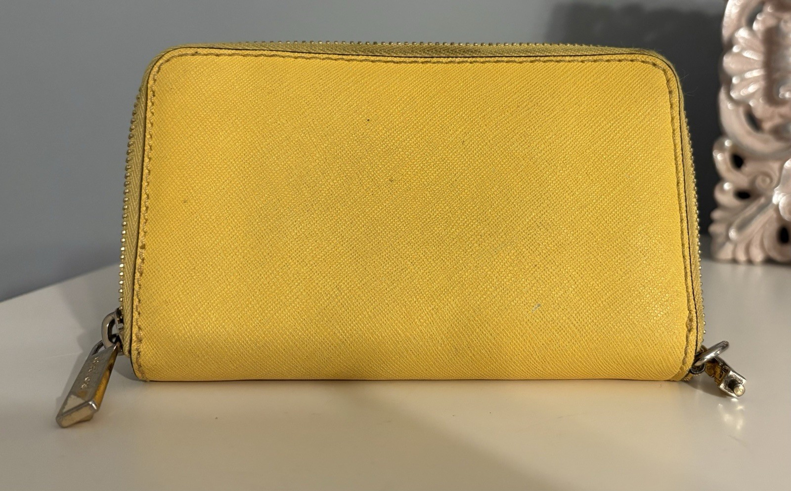 Used - has some color markings on the zipper and missing strap