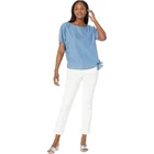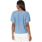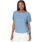 Michael Michael Kors Women's Blue Light Wash Tencel Cadet Side-Tie Top Size S New with tags MRSP $78 Scoop neckline Tie at left Elbow sleeves with drop shoulders Lightweight 57% cotton /43% lyocell Machine washable Length back 23" Chest armpit to armpit (flat lay) 23"