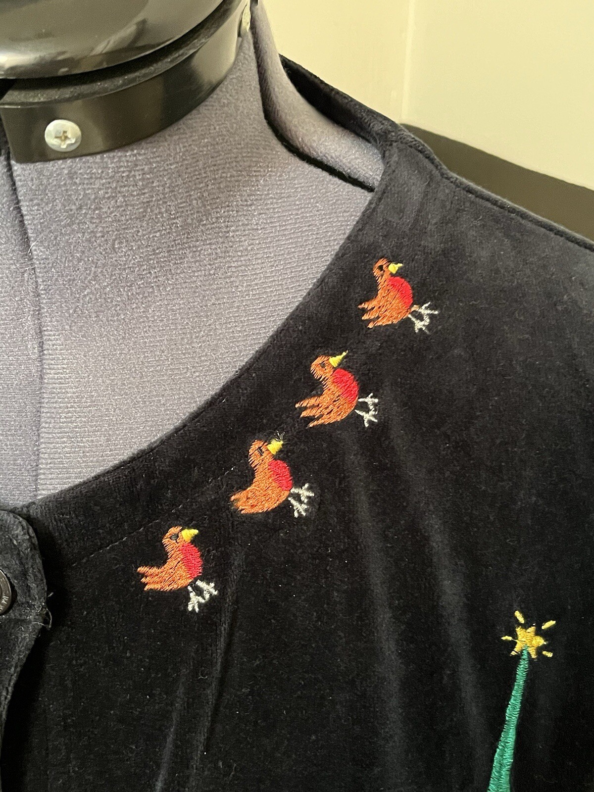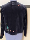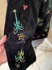Elevate your wardrobe with this stunning Michael Simon Lite sweater. The cardigan features a beautiful quirky Christmas tree s bright colorful art to wear granny core . pattern with tight-knit velvet fabric, perfect for any occasion from casual to business. The long sleeve and crew neck design provide comfort and style, while the embroidered accents add a touch of elegance. The sweater is lightweight and easy to care for, with hand wash only recommended. The black color and regular fit make it a versatile piece for any wardrobe, and the size small is perfect for women. Whether you're attending a party, traveling, or just dressing up, this sweater is sure to make a statement. Please see all photos. They are part of description. Measurements are in the photos. Perfect novelty Christmas sweater.