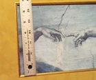 The Michelangelo Creation of Adam Set features two medium-sized framed prints in gold-tone frames, showcasing the iconic artwork by Michelangelo. The prints are made of wood, glass, and paper, giving them a classic and elegant look suitable for any art enthusiast or religious art collector. These licensed reprints capture the intricate details and emotional depth of the original masterpiece, making them a timeless addition to any art collection. Professionally Framed by Fastframe-Expert Picture Framing Cincinnati Oh. Please pictures for details.