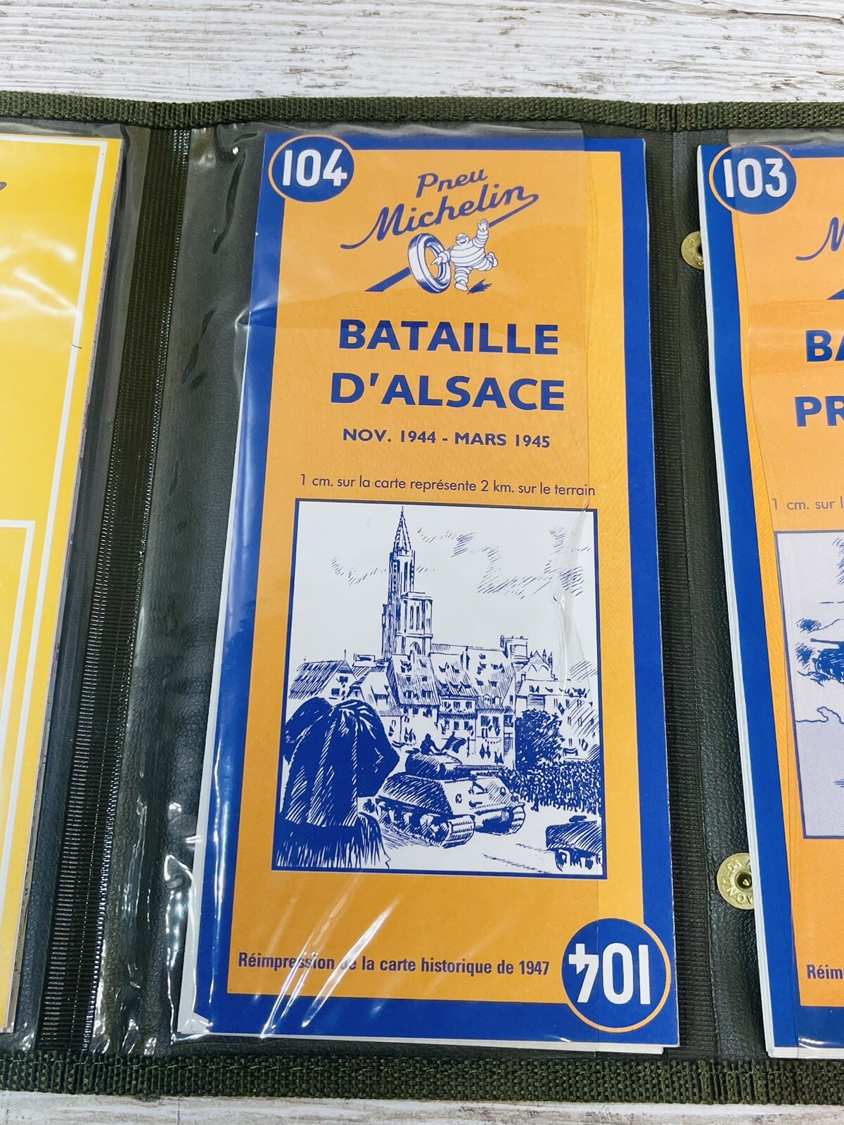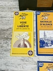 Vintage 1994 rendition of the battle of Normandy, Provence, D”palace and the liberte maps are in good condition and barely if ever used. they come in a billfold with clear sleeves , one of the sleeves plastic is wrinkled .