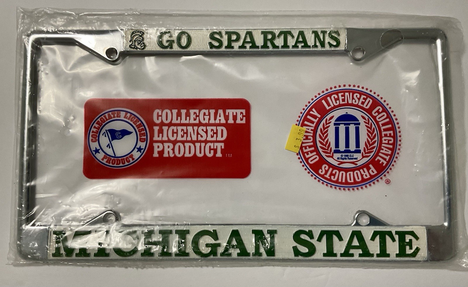 Color:Multi Color & ChromeUPC:Does not applyTeam:Michigan State SpartansSport:AllProduct:License Plate FrameCountry of Origin:UnknownModified Item:Nogtin13:Does not apply