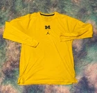 Elevate your game day attire with the Michigan Wolverines Air Jordan Shirt, designed for the ultimate fan. Showcasing a vibrant yellow color, this men's large shirt features a prominent center logo that celebrates the iconic partnership between Nike and the Wolverines. Crafted with care, this piece is a testament to both your team spirit and style. Officially licensed, this shirt embodies the spirit of the regular season and is perfect for those who appreciate the legacy of Michael Jordan. Whether you're at the stadium or enjoying the game from home, this long-sleeve tee is sure to become a staple in your collection of college sports memorabilia.