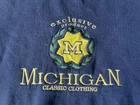 Crafted by Crable Sportswear, this Michigan Wolverines crewneck sweatshirt is a quintessential piece for any die-hard football fan. Adorned in a dark blue, this sweater embodies the spirit of the team and is designed to keep you comfortable while you cheer for your favorite college squad. With its XL size, it's a snug and warm addition to any fan's wardrobe. Proudly made in the United States, this sweatshirt is a nod to football tradition, perfect for regular season games and the playoffs. Whether you're at the stadium or watching from home, the sweater's classic design and durable construction make it a timeless piece for all kinds of fan celebrations.