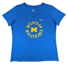 Michigan Wolverines T-Shirt Large Women's Nike Dri-Fit V-Neck Blue 100% Poly