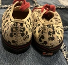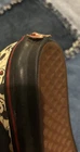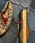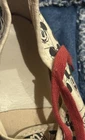 Item is used they may have wear, fade, discoloration, marks, imperfections. See photos for imperfections, added material inside shoe at heal area. ( must be glued not removable). Tagged size 9 runs smaller. See measurements to help w/ sizing. Sold as is, no returns.